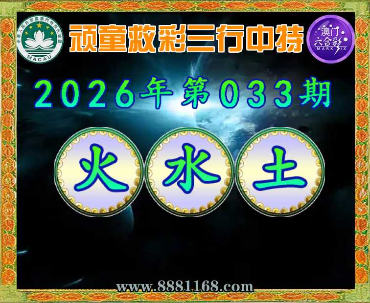 033期:〖顽童救彩〗 📙三行中特📙【火.水.土】开:00准